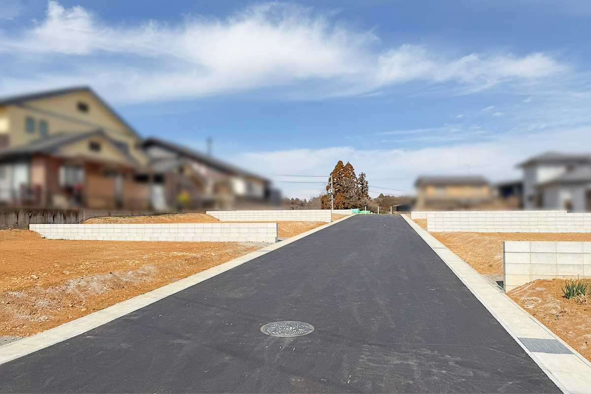 - 接道状況 / 1~3・5号地:開発道路(幅員約6.0m)・1号地:南側の公道[2項道路](幅員約3.5m)に接する