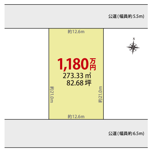 - 接道状況 / 北側の公道(幅員約5.5m)・南側の公道(幅員約6.5m)に接する