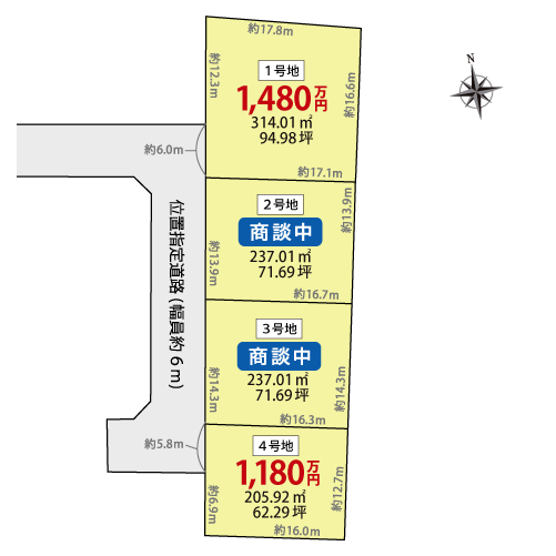 ※坪単価〔1号地:15.5万円 / 2号地:16.4万円 / 3号地:16.4万円 / 4号地:18.9万円〕