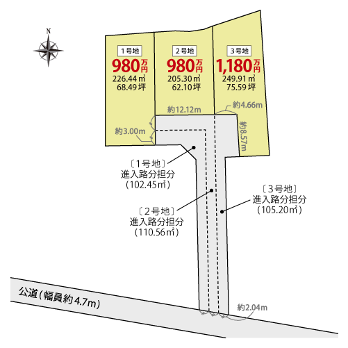 | 3 | 249.91 ㎡ | 75.59 坪 | 1,180万円 | 〇 |