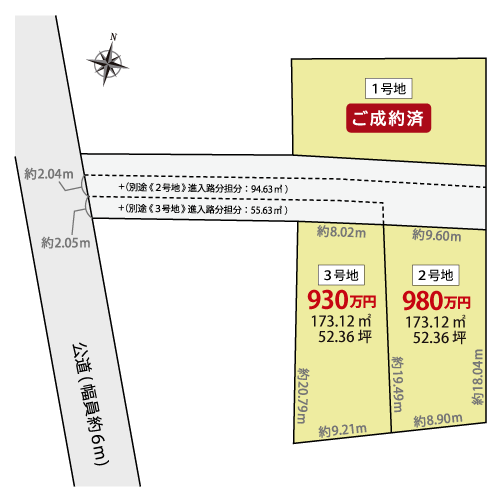 | 3 | 173.12 ㎡ | 52.36 坪 | 930万円 | 〇 |