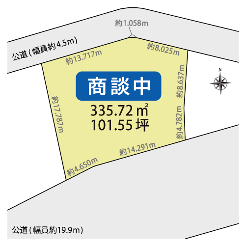 - 接道状況 / 北側の公道(幅員約4.5m)・南側の公道(幅員約19.9m)に接する