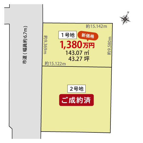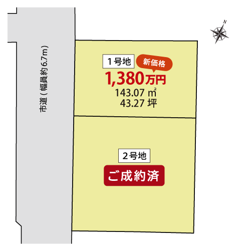 | 1 | 143.07 ㎡ | 43.27 坪 | 新価格 1,380万円 | ○ |
