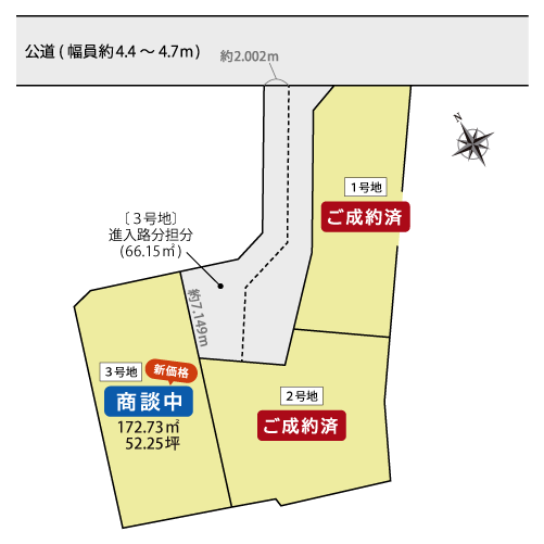 - 接道状況 / 北側の公道(幅員約4.4~4.7m)に接する