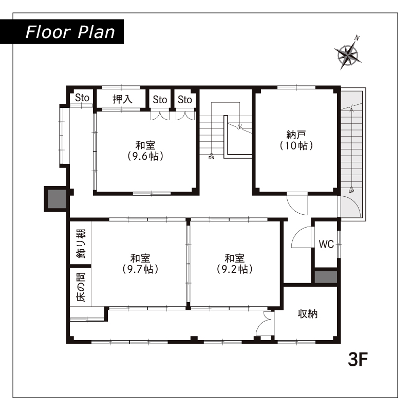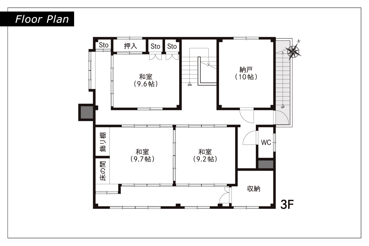 | 設 備 | オール電化 ・キッチン / IHクッキングヒーター(3口) / カップボード ・洗面化粧台 / 浴槽 / トイレ3ヶ所 ・フローリング / 畳 / 収納 / 押入 / 床の間 / 飾り棚 / 出窓 / 照明器具 / 外部物置 / 屋上 |